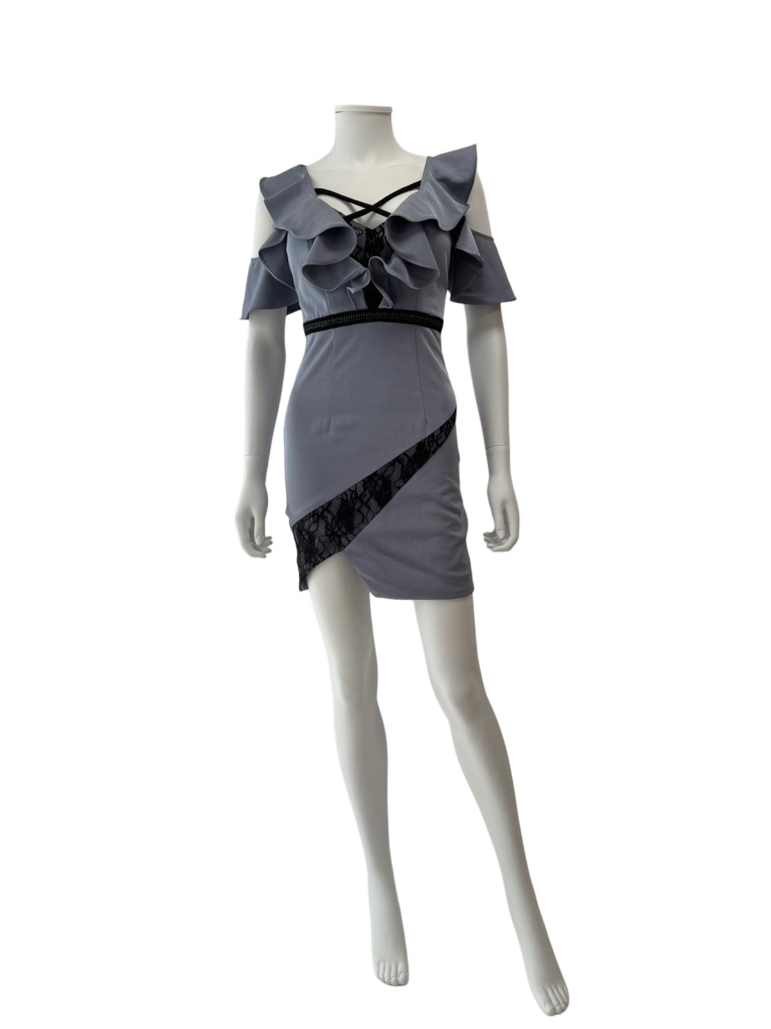 【038】オフショル スリット 袖あり レース タイト ミニドレス キャバドレス ROBE de FLEURS Glossy