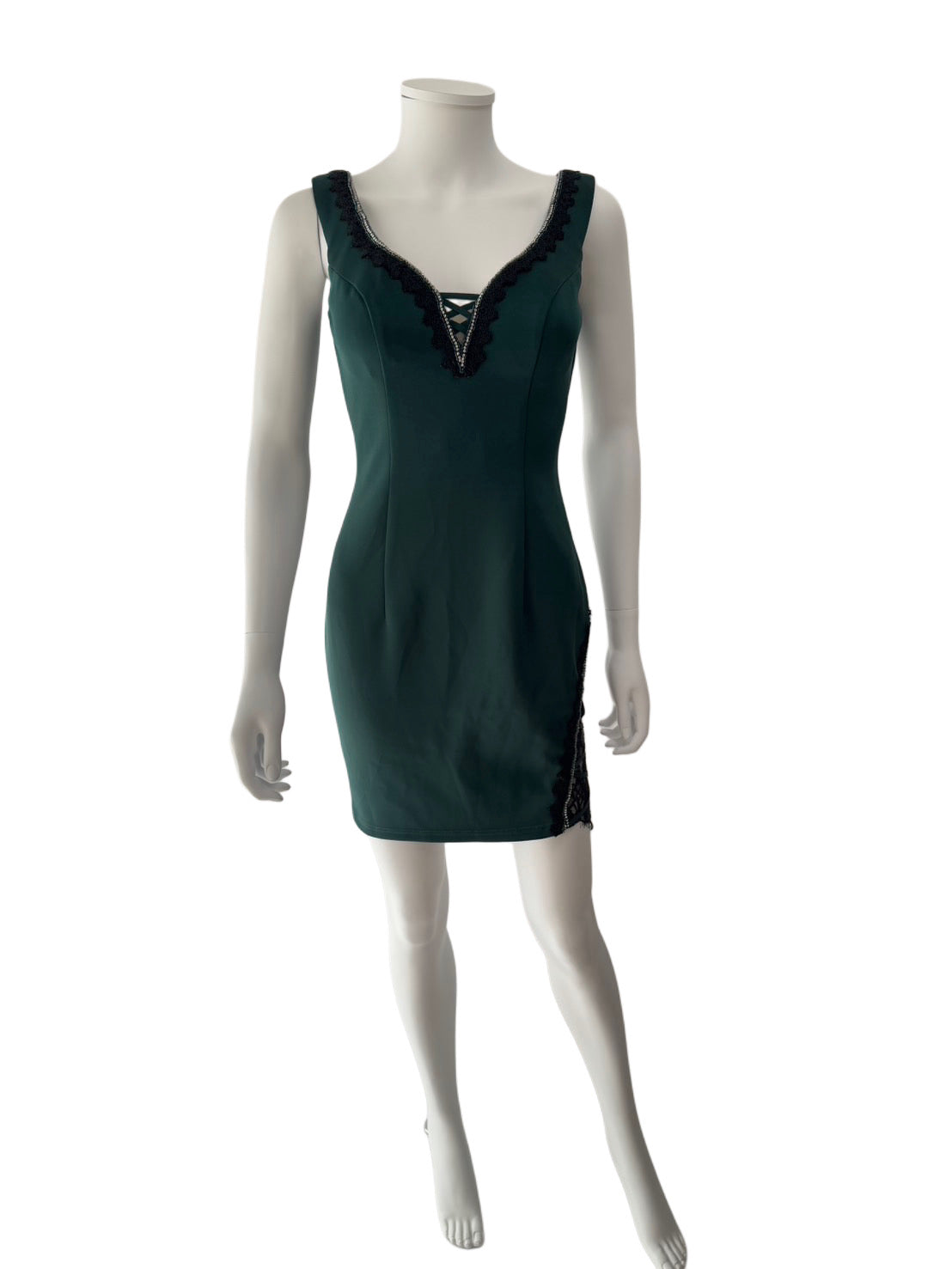 【095】サイドレース ノースリーブ ミニ丈 ビジュー キャバドレス ANGLE R