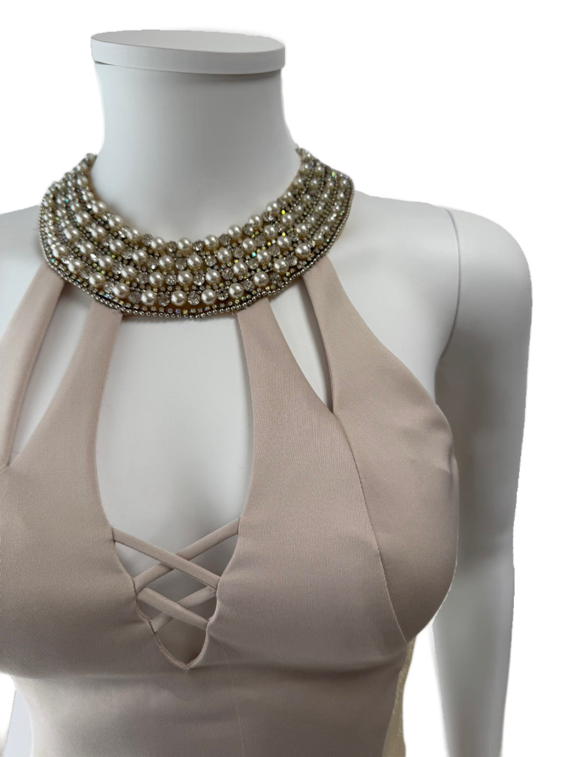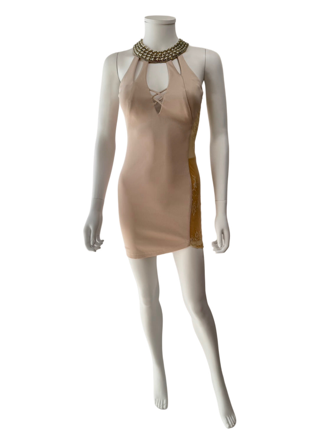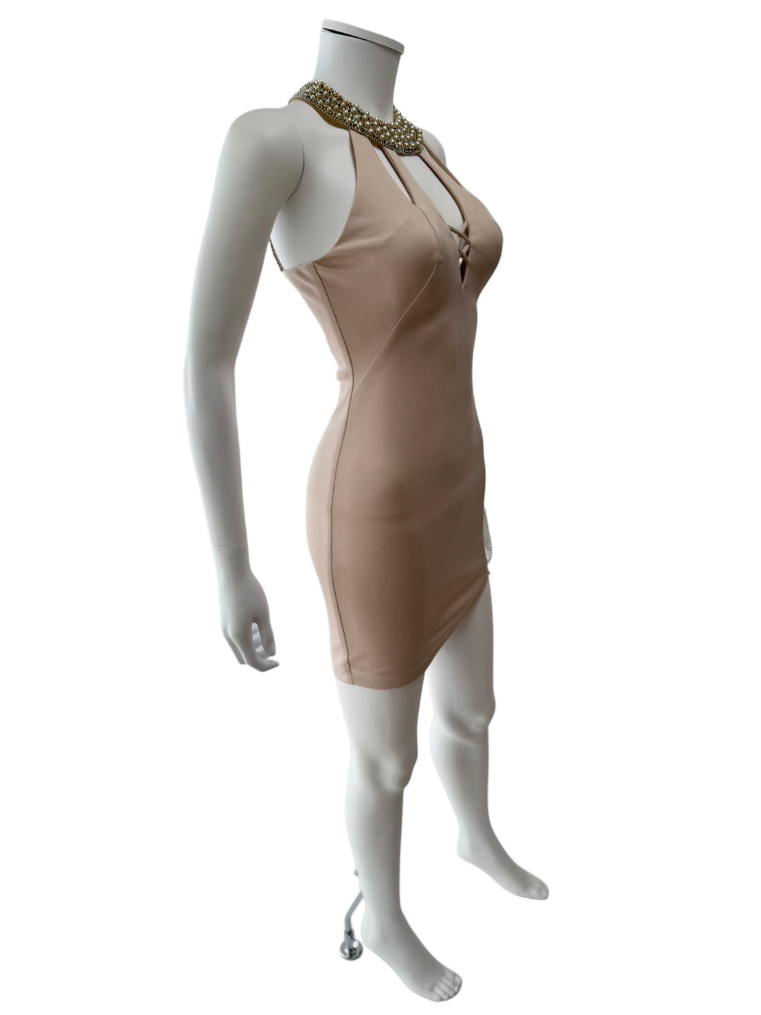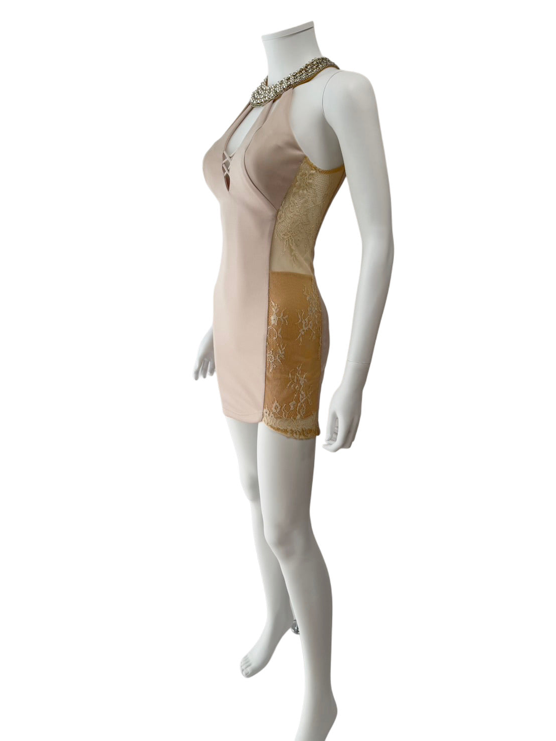【113】ビジュー シースルー ノースリーブ ミニ丈 ミニドレス ANGLE R