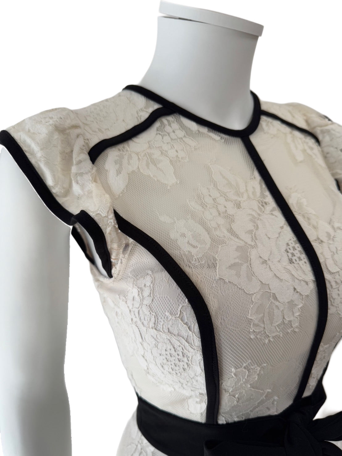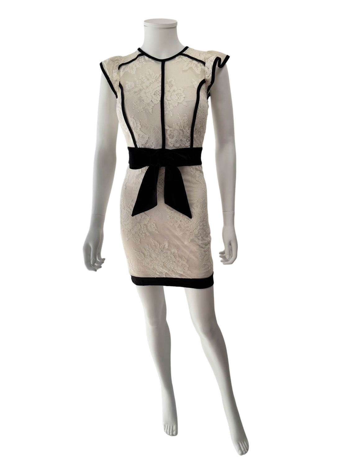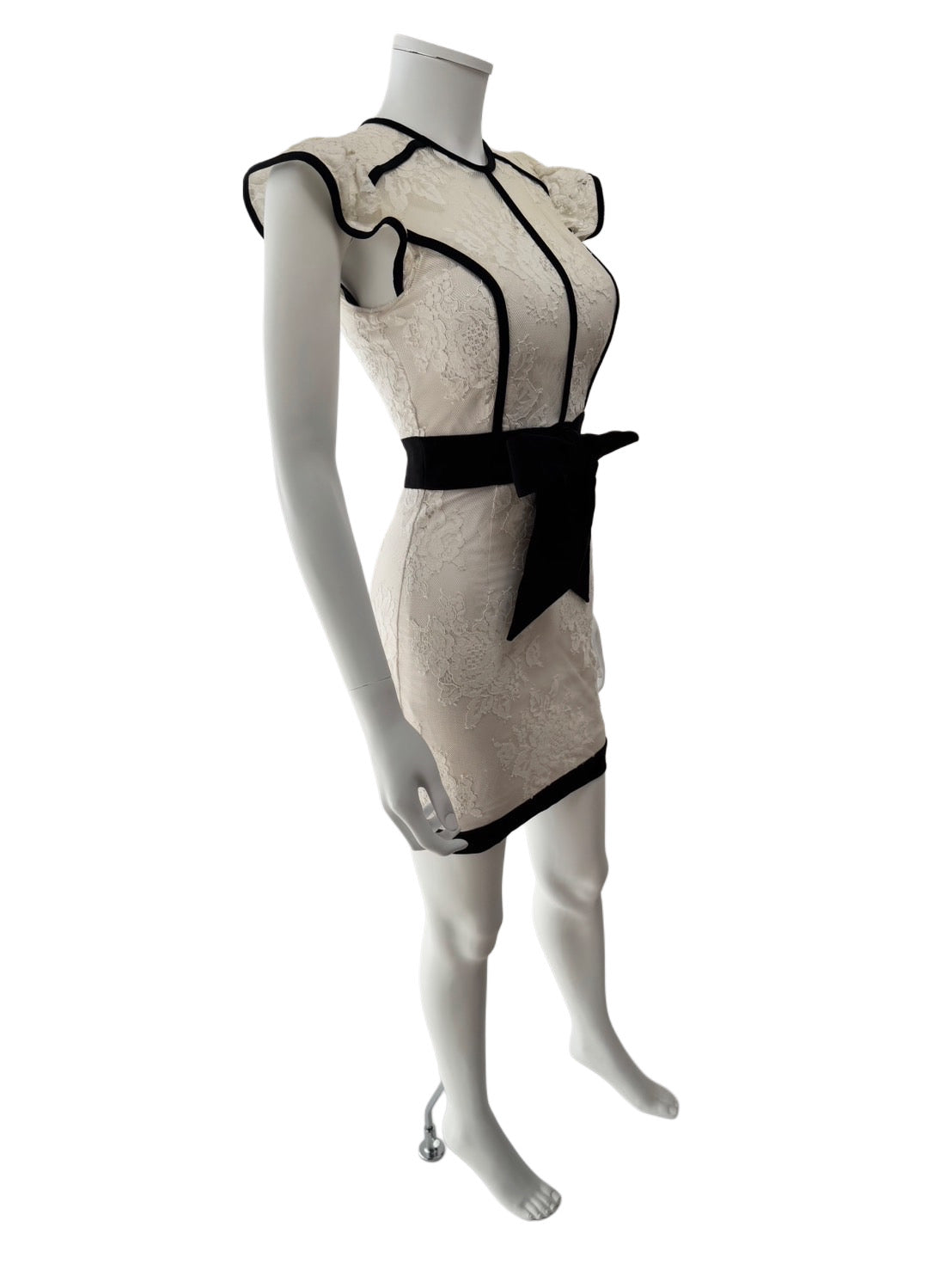 【114】フリル ノースリーブ レース リボン ミニ丈 ミニドレス Andy