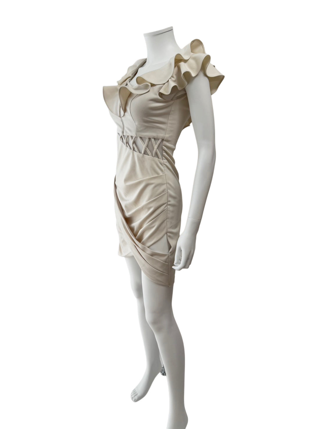 フリルやサイドギャザーが特徴のミニドレス