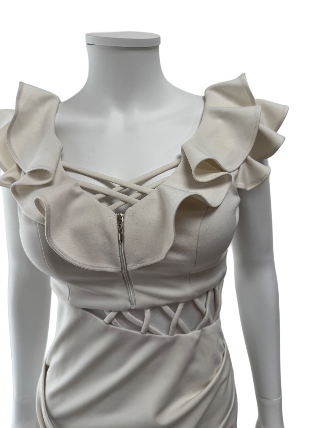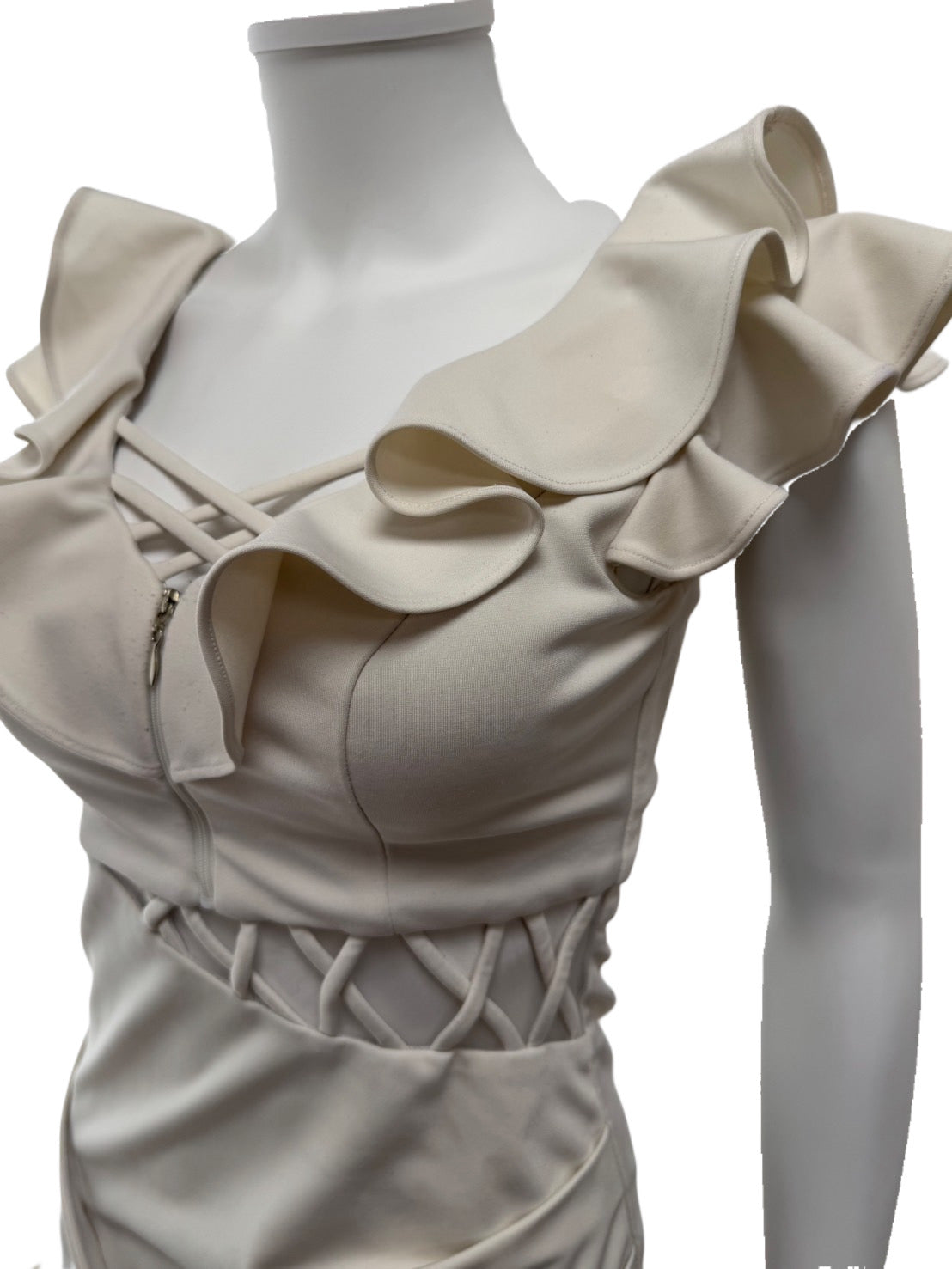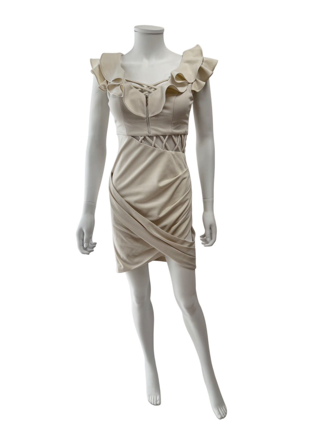 【122】フリル サイドギャザー フロントジップ ミニ丈 ミニドレス Andy GLAMOROUS