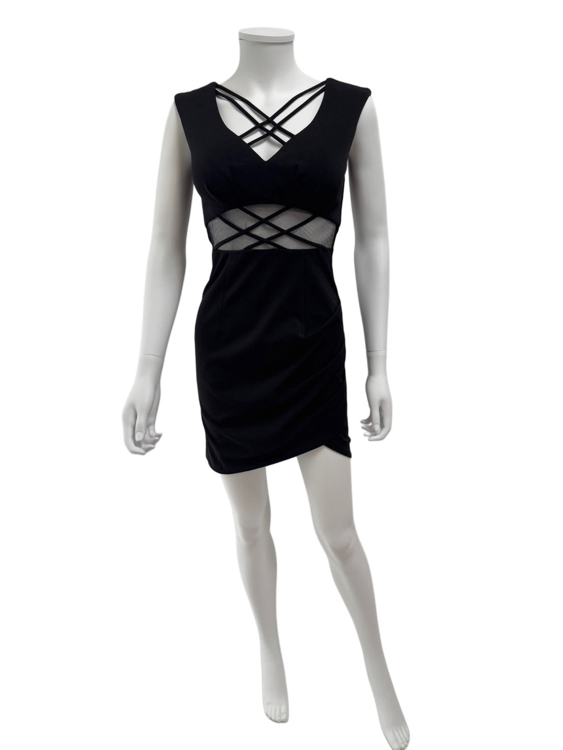 お腹のシースルーがセクシーなミニドレス