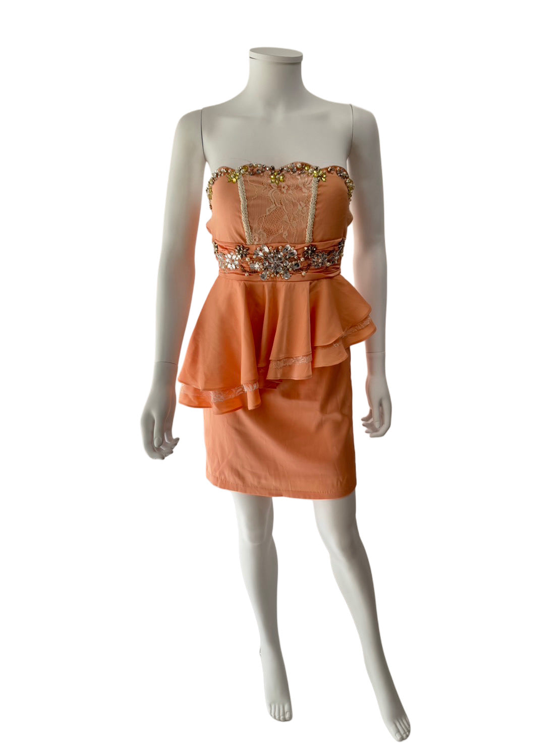 【130】ペプラム ビジュー ミニ丈 ミニドレス ROBE de FLEURS