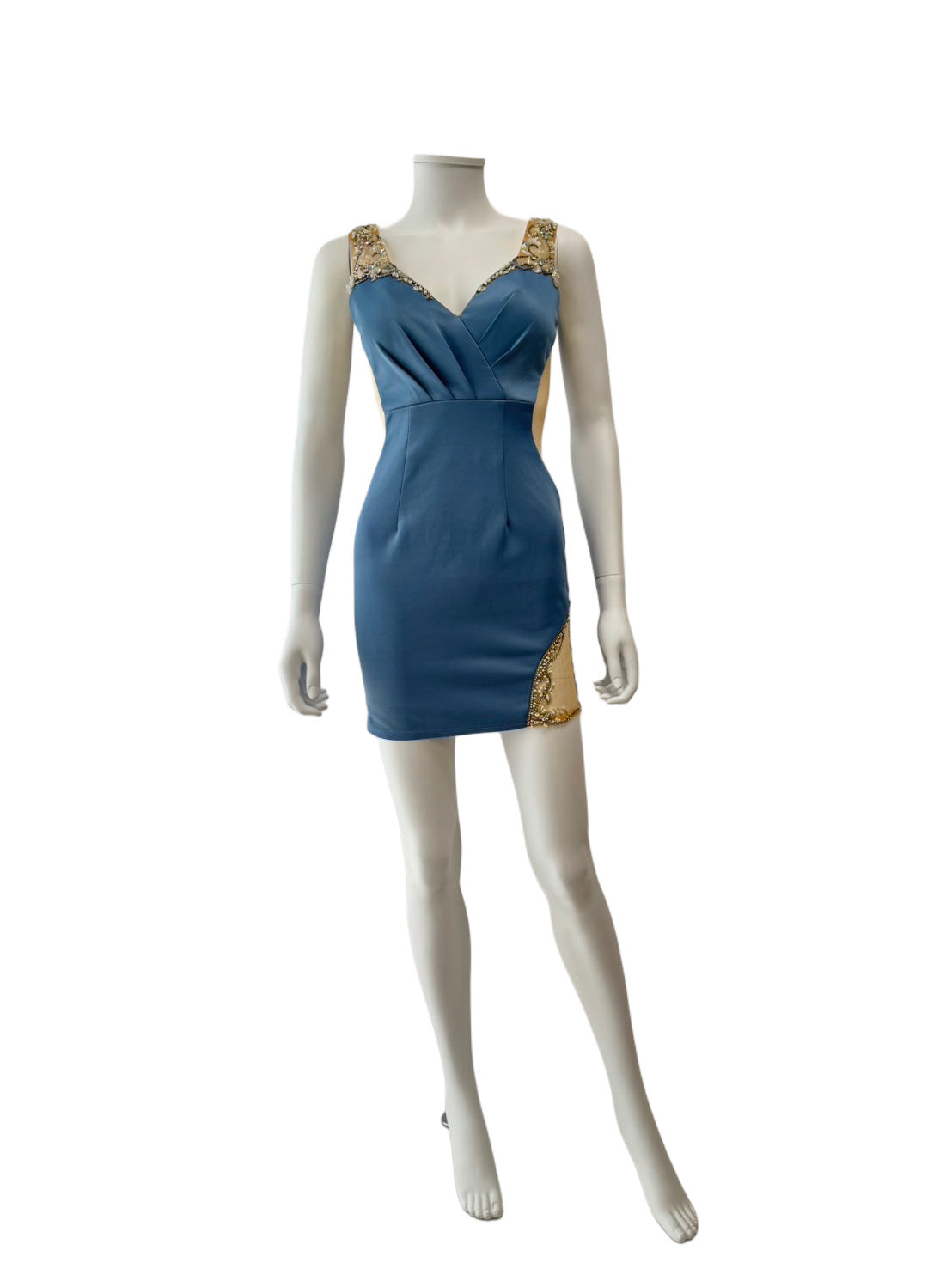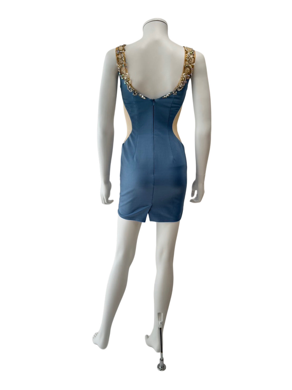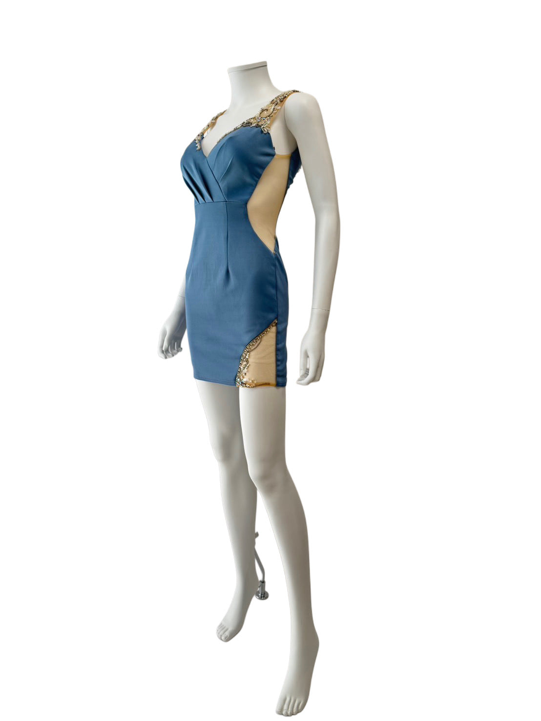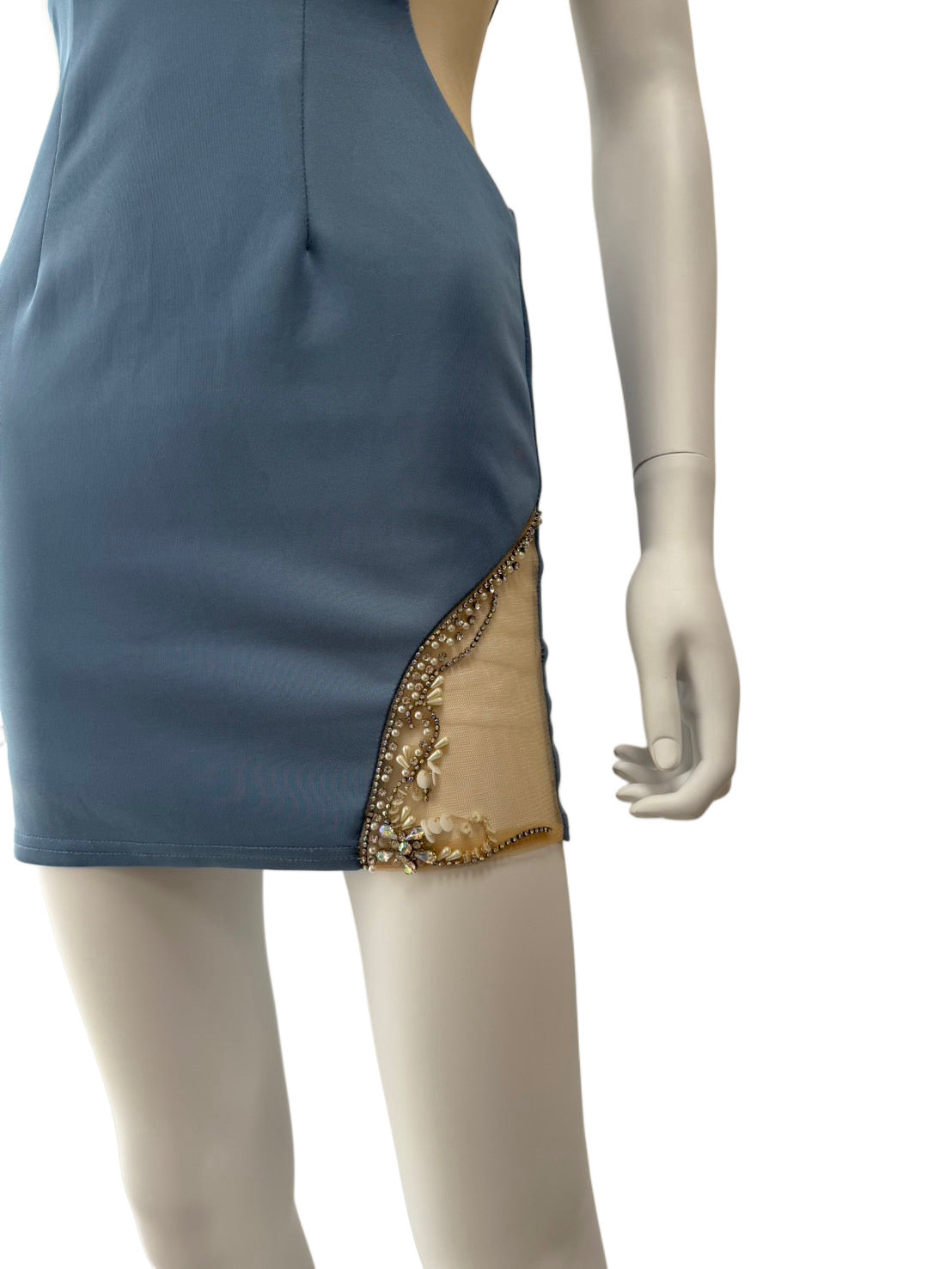 【149】ノースリーブ ビジュー シースルー ギャザー ミニドレス ANGLE R