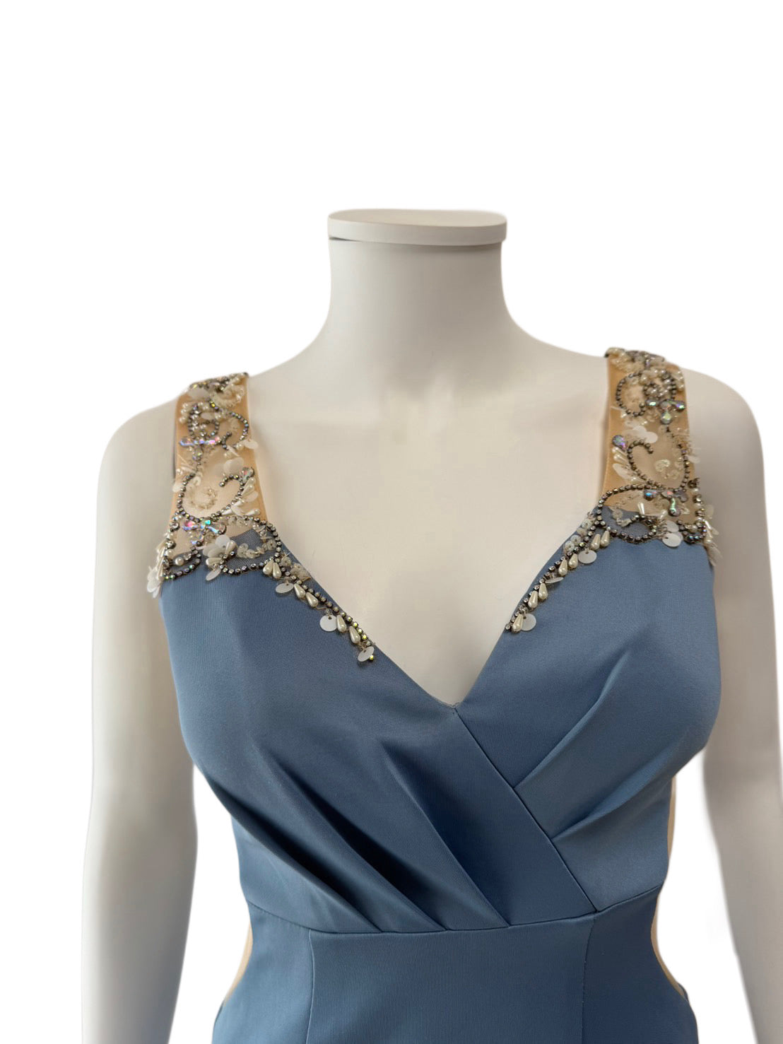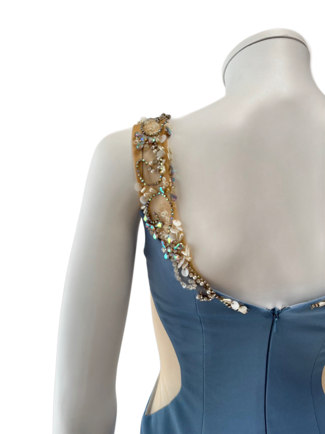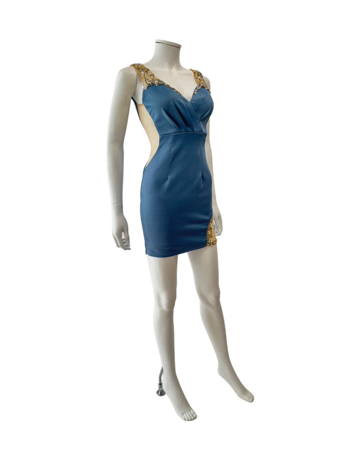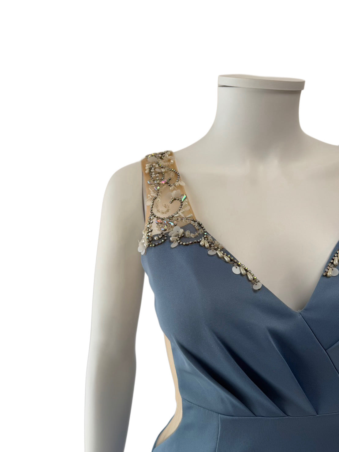 【149】ノースリーブ ビジュー シースルー ギャザー ミニドレス ANGLE R